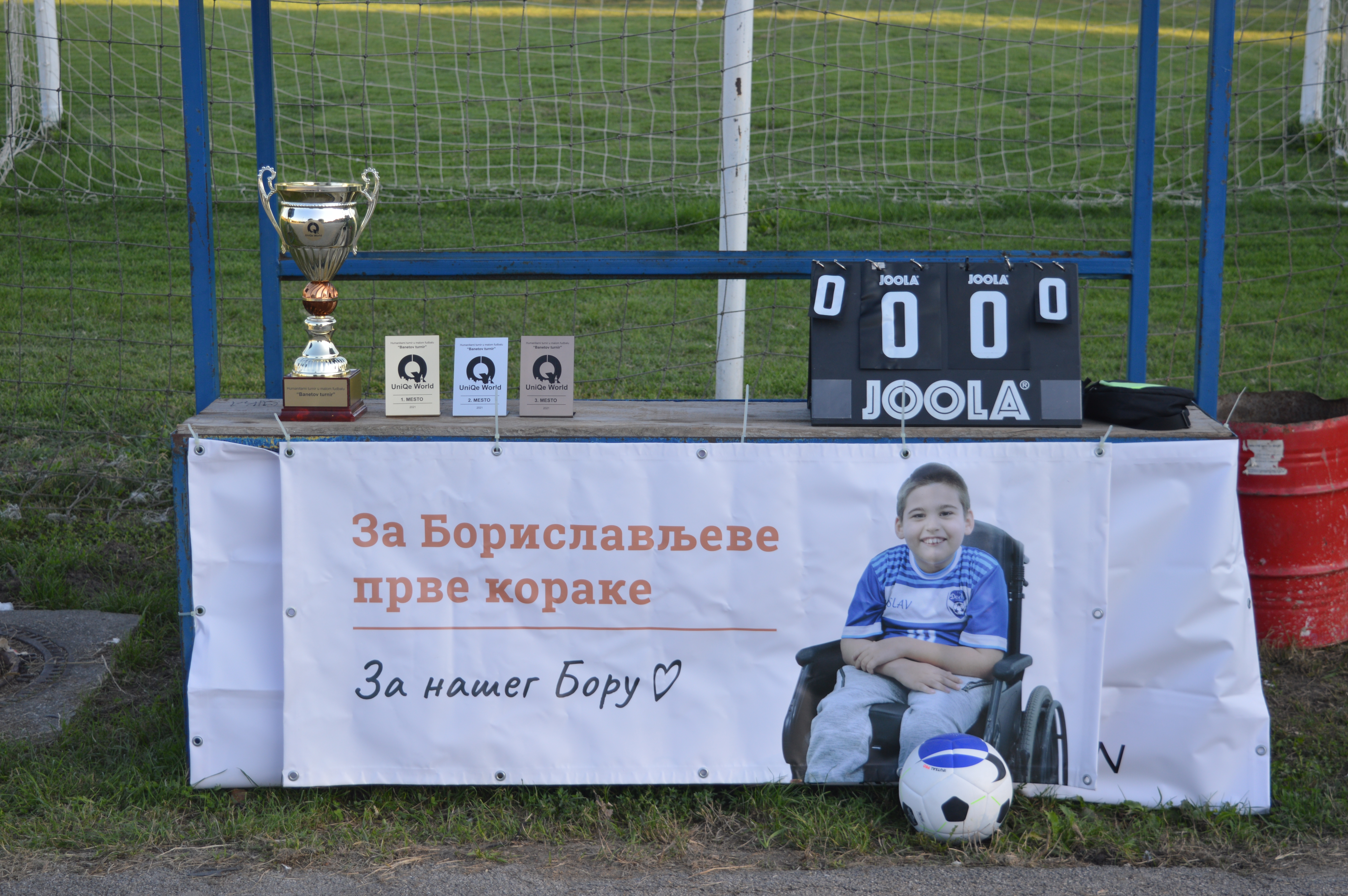 Naš memorijalni Banetov turnir, organizovan je za prikupljanje novčanih sredstava za Borislavljeve prve korake! Borislav Stanojevic Bora je dete sa cerebralnom paralizom, borba za prve korake traje od njegove četvrte godine. Naš drugar Bora imao je priliku i da bude na terenu i da simbolično odigra utakmicu. Posetili su nas i dva igrača njegovog omiljenog tima Crvene Zvezde ( Mirko Ivanić i Aleksa Vukanović )